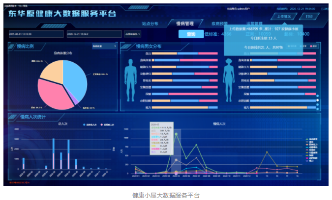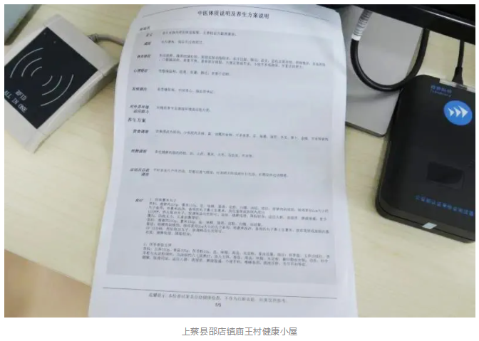 陈勇表示,庙王村中心脑血管病患者不在少数,而且随着生活方式的改变,慢病年轻化的趋势逐渐明显。为了改善村民健康状况,2020年,庙王村制定了“庙王健康村”工作方案,在推进脱贫攻坚工作的同时,推进全民健康计划。庙王村健康小屋配备了多种专业仪器,身高体重测量仪,医用电子血压仪,中医体质辨识仪等,血压、身高、体重、血氧饱和度、心率等多种项目可测,并且配备了东华原健康大数据服务平台,检测设备互通互联,村民检测结果可同步汇总到小屋终端数据电脑,还可提供多种报告查询方式,如网页、邮箱、APP,让村民可方便、快速地检测和获取体检报告。