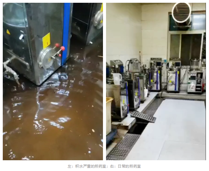 7月23日,九游j9官方网站接到河南省中医院维修支援的请求。由于积水严重,医院内40多台十功能自动煎药机全部进水,电机也未能幸免,机器已无法使用。众所周知,洪涝灾害发生后,极易导致肠道、呼吸道等的传染性疾病。中医药防治救治是其中关键的一环。修好机器,让医院煎药室正常运转,势在必行。