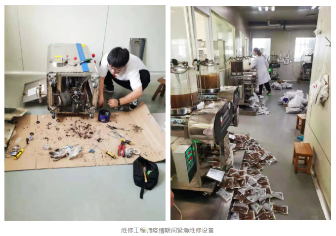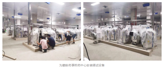 为了让新设备尽早投入到疫情防控当中,南京分公司经理霍灵瑜组织员工10人,在遵守当地防疫规定的情况下,到鹤龄药事煎药中心安装调试新设备,经过2天的努力,新增的一百多台煎药包装设备全部安装调试完毕,可正常投入使用。