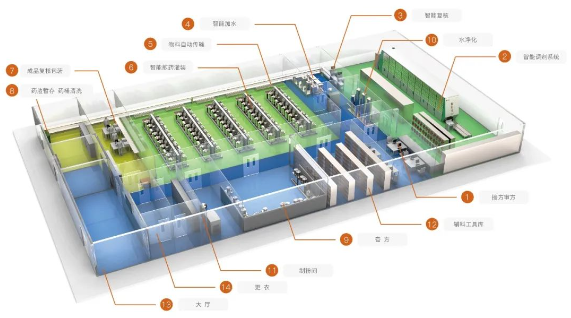 建成运行的高密市智慧共享中药房总面积达500平方米,分审方区,调剂区,仓储区,普煎区,膏方区,浓缩区,配送区等功能区。设有东华原十功能全自动煎药机28台、东华原高温高压煎药机6台、东华原膏方浓缩煎药机6台、东华原膏方调膏机4台等设备,可日均完成代煎中药300余人次、膏方日加工10余人次,能够满足不同群众的中医药需求。