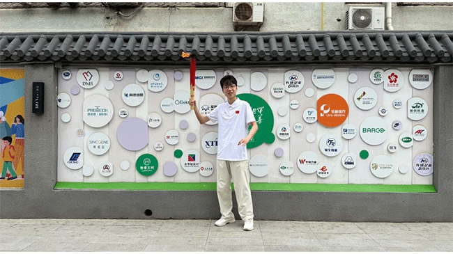 8月14日,火炬传递城南街道段正式开跑,南程与东华原LOGO合影