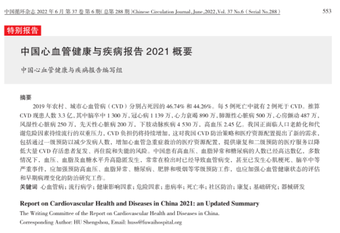 2021年《中国心血管健康与疾病报告》发布!患病率持续上升,维持血管健康应作为重点