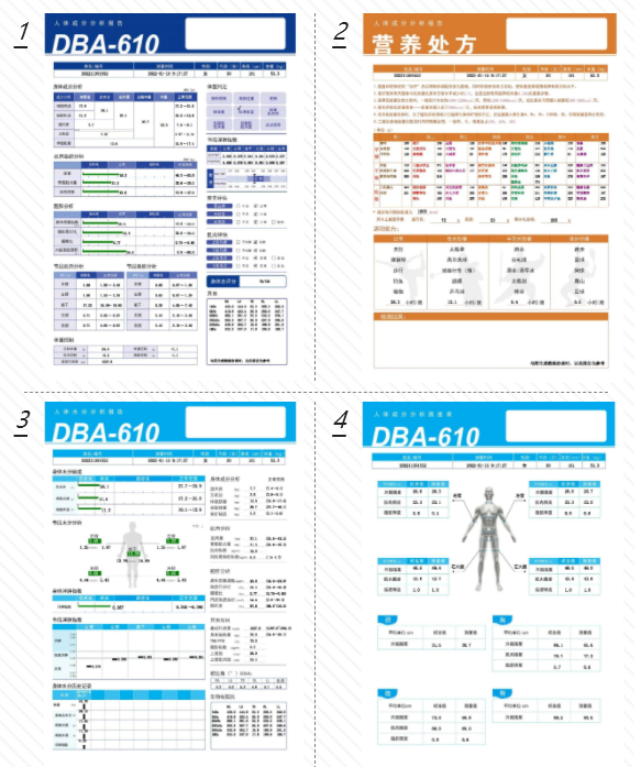 东华原人体成分分析仪通过8点接触式电极,在手、脚四个接触面上分离电压电极和电流电极减少测量误差,提升测量数据的准确性和一致性,可以提供的报告类型包含了:人体成分、人体水分、人体围度、儿童专用、营养处方等,根据人体成分报告及营养处方报告,可提出相对应的超重和肥胖症的“治疗”重点,给出营养、运动指导建议,并结合检测结果提供一周三餐共21套营养套餐及4套运动方案,为后期营养膳食、合理运动提供支持。