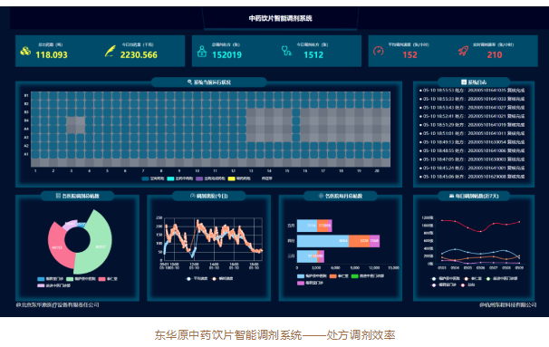 调剂系统软件可根据智能调剂系统运行情况输出处方调剂效率,包括总出药量、今日出药量、总调剂处方、今日调剂处方、平均调剂速度、实时调剂速度、各医院调剂总帖数、调剂速度、各医院每月总帖数、每日调剂帖数等。