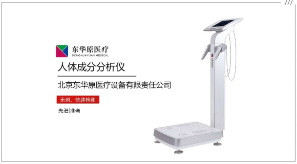 东华原人体成分分析仪专为国民健康管理研发,应用多频生物电阻抗分析法,利用人体内脂肪、水分等不同成分的导电性差异来测定人体成分的含量,提供具有临床价值的健康报告,并在此基础上提供营养处方和运动处方。相比传统的体重指数(BMI)等指标,人体成分分析仪可以提供更加丰富的数据,更是可以提供针对性的饮食和运动建议,更好的帮助肥胖患者进行科学减脂。