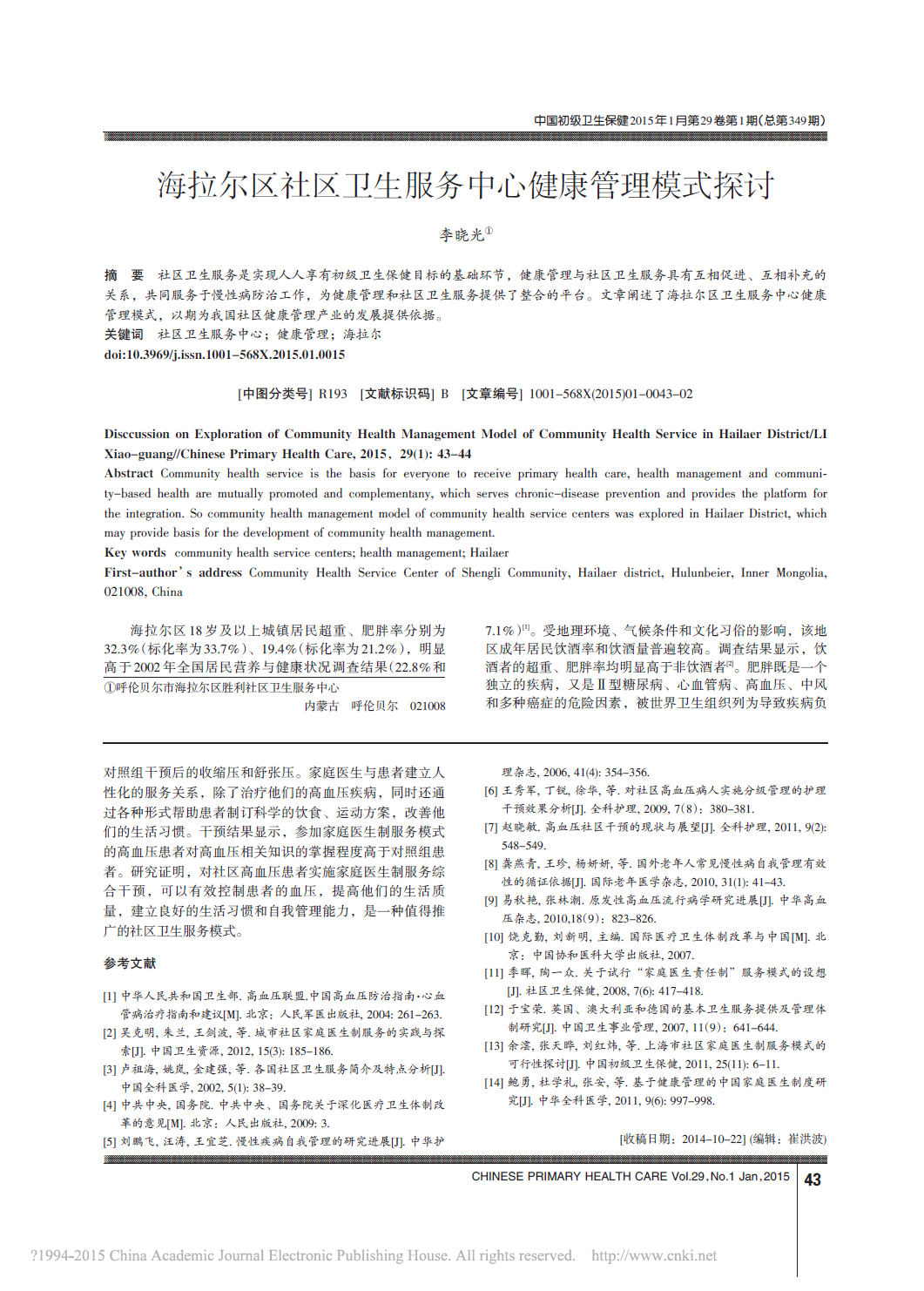 海拉尔区社区卫生服务中心健康管理模式探讨