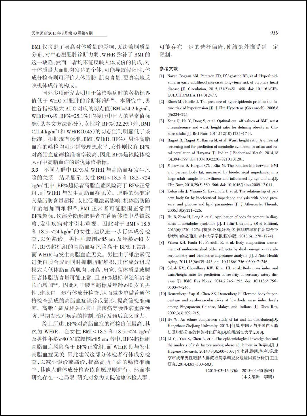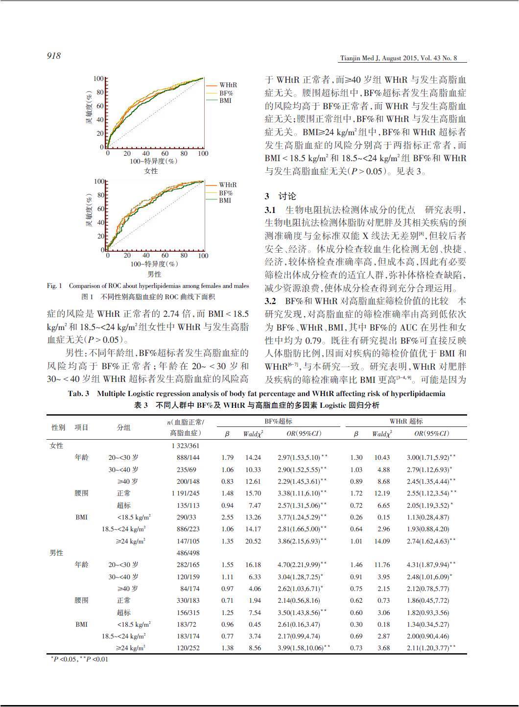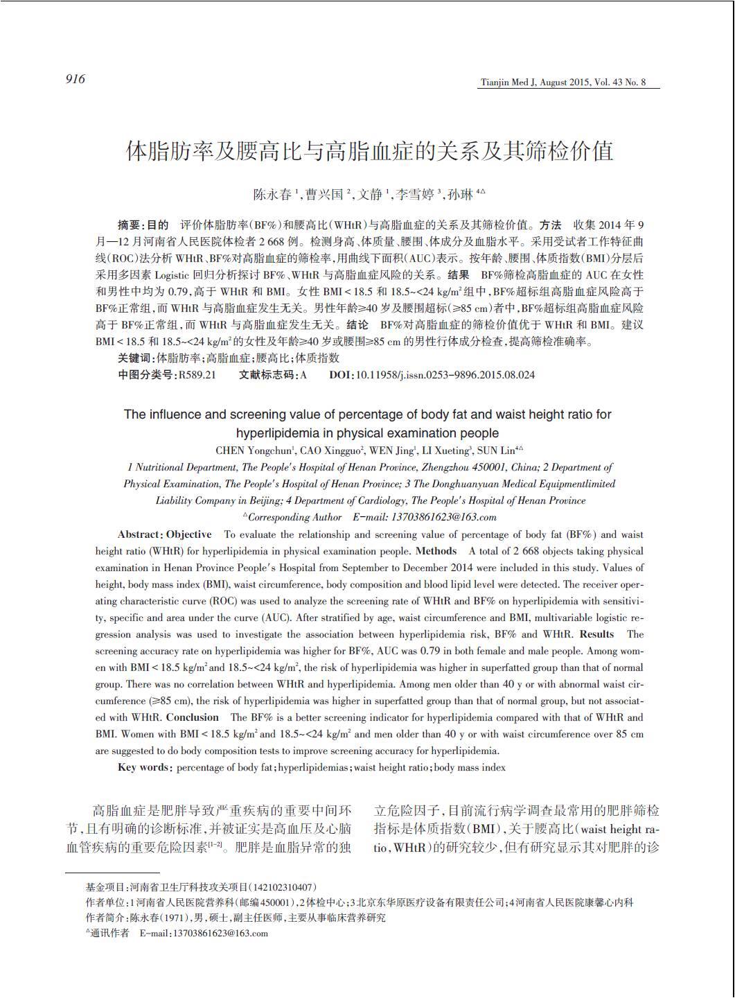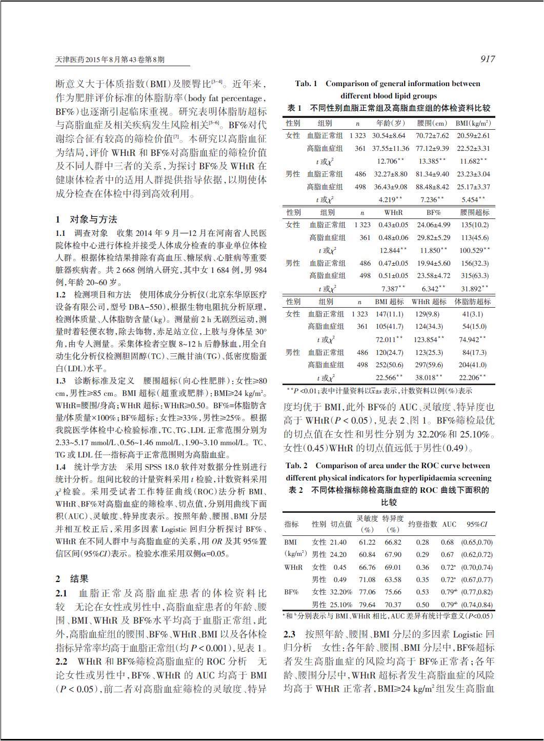 体脂肪率及腰高比与高脂血症的关系及其筛检价值