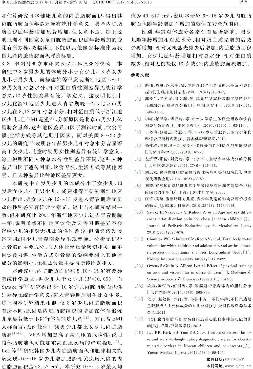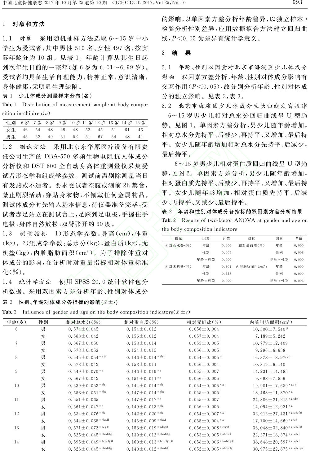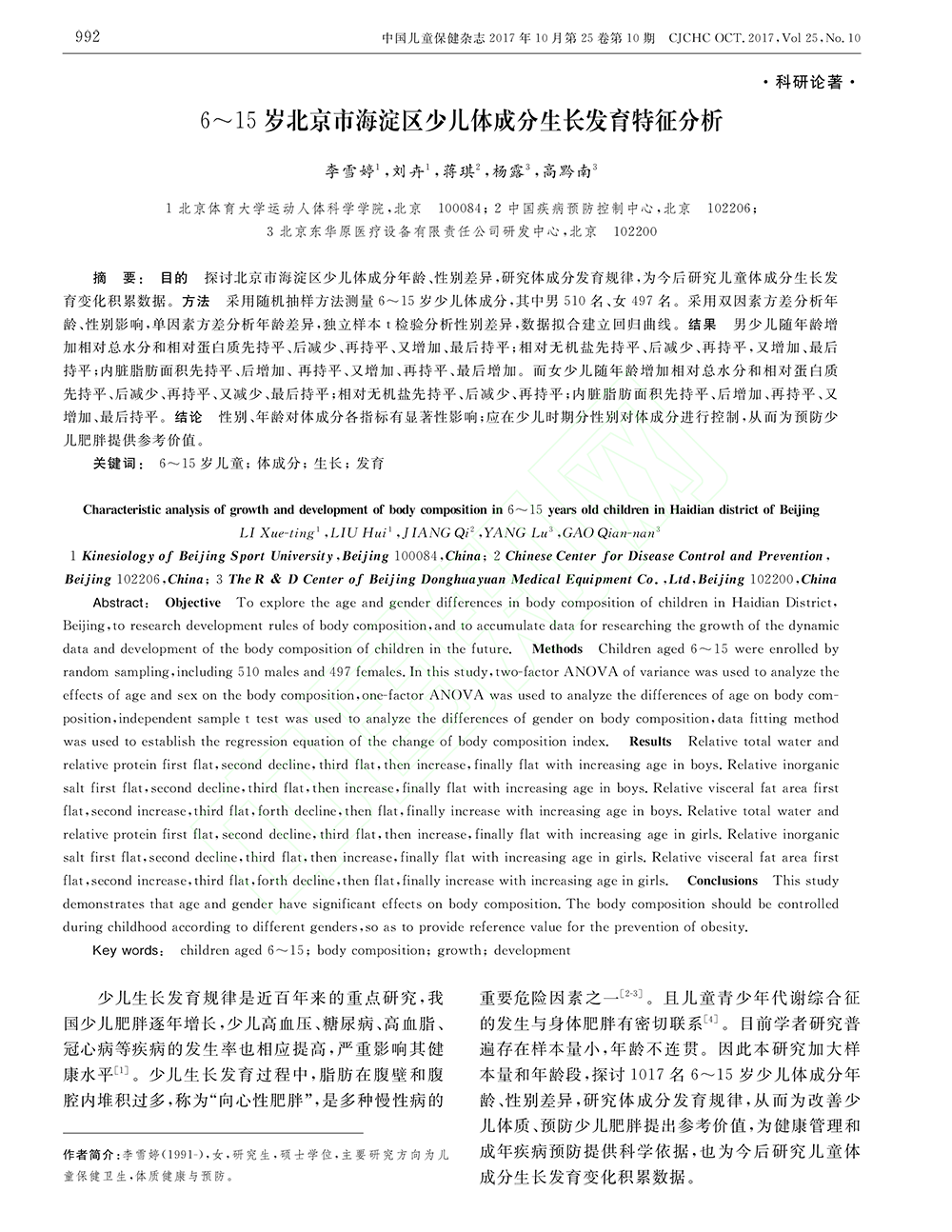 6_15岁北京市海淀区少儿体成分生长发育特征分析