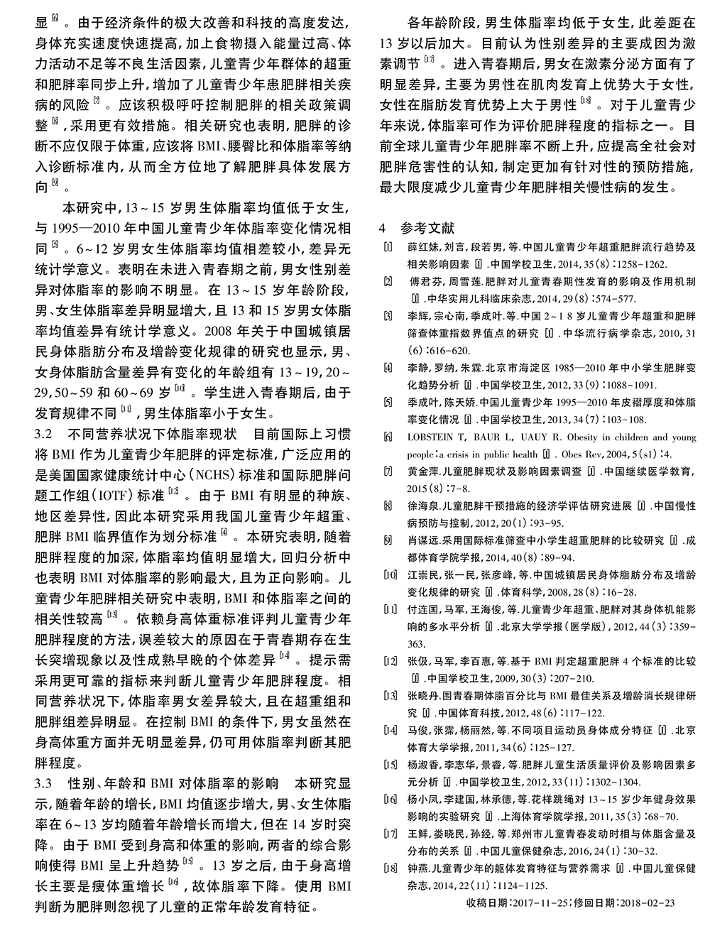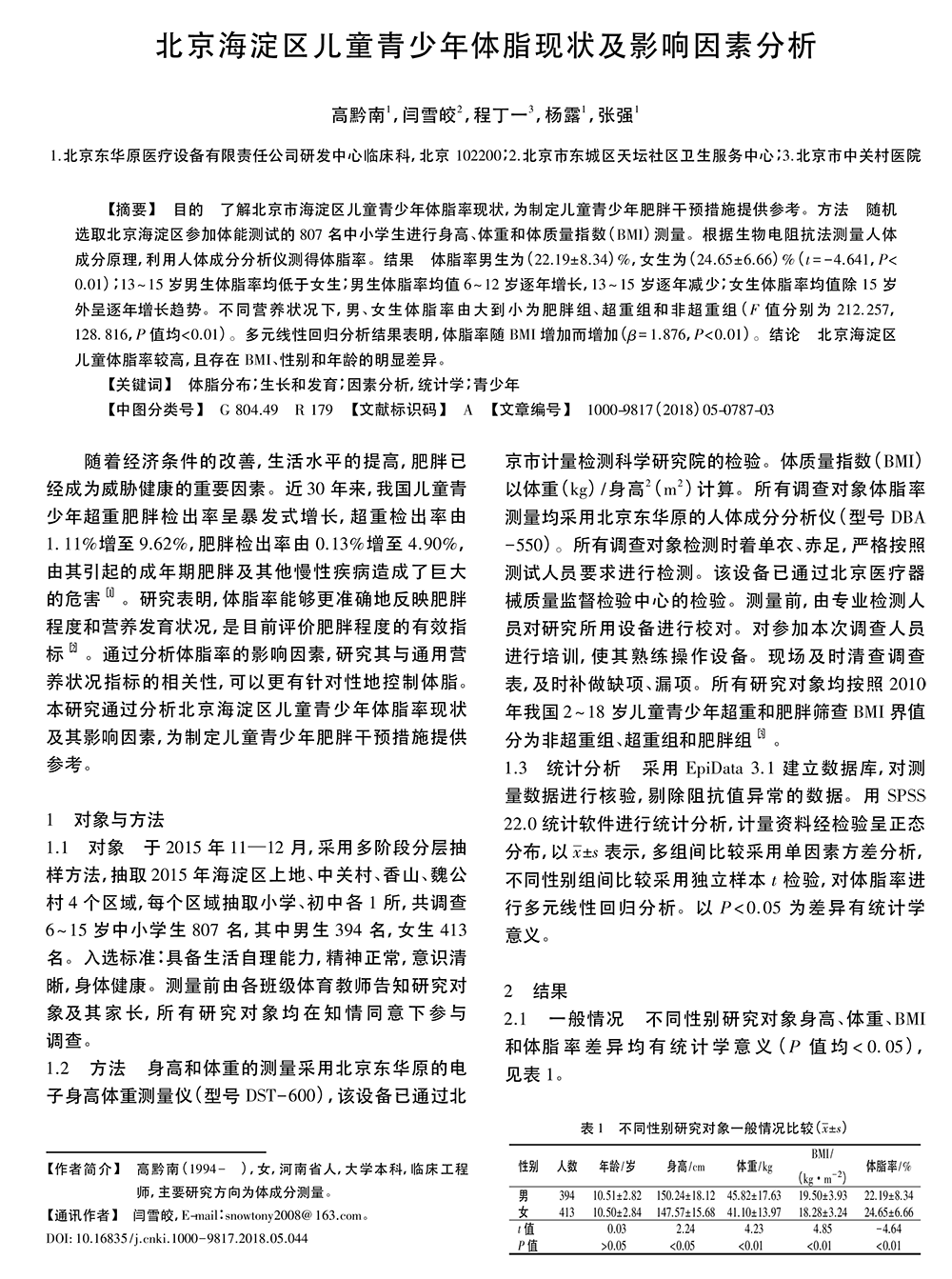 北京海淀区儿童青少年体脂现状及影响因素分析