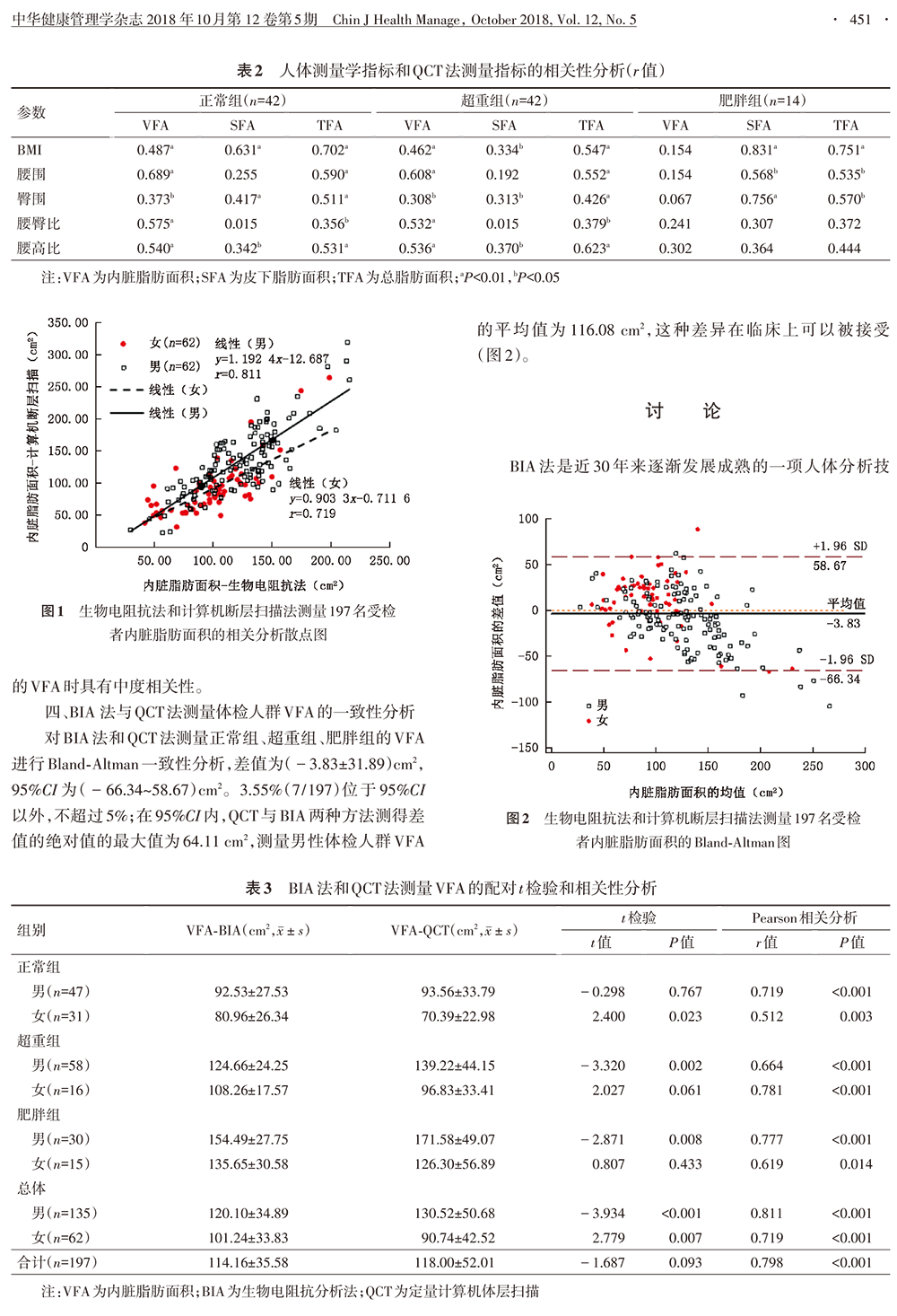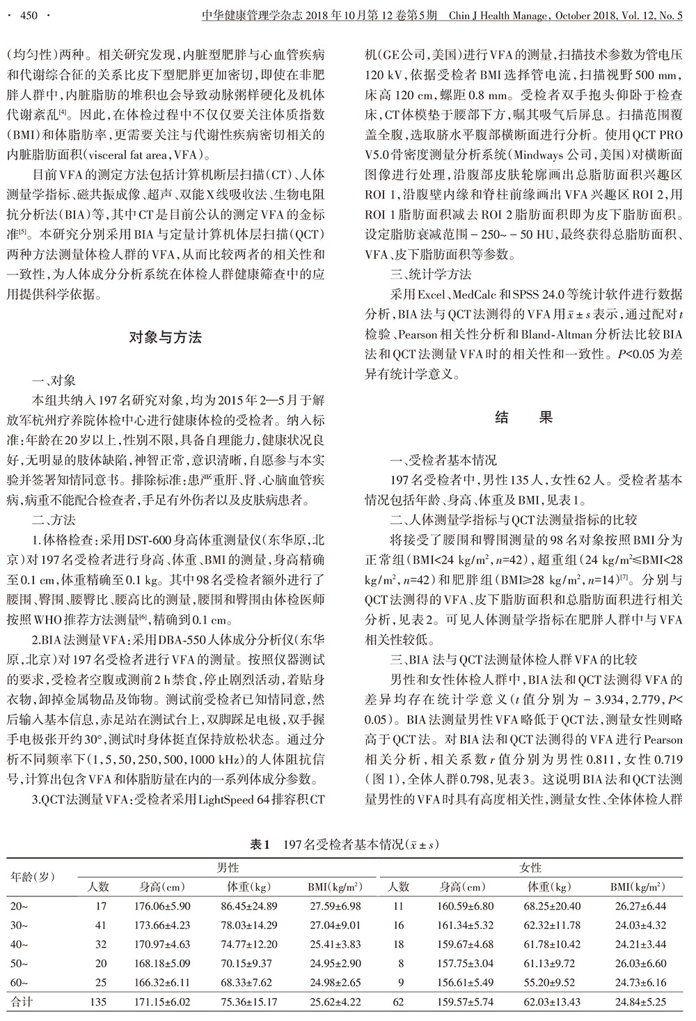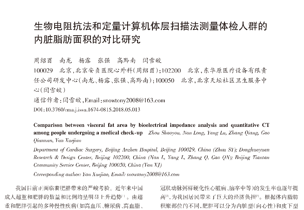 生物电阻抗法和定量计算机体层扫描法测量体检人群的内脏脂肪面积的对比研究