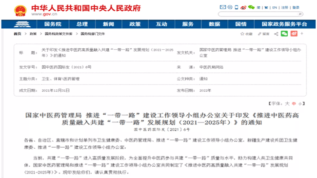 东华原前瞻 | 《推进中医药高质量融入共建“一带一路”发展规划(2021—2025年)》印发