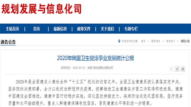 2021-07-20来源:卫生健康事业发展统计公报 -