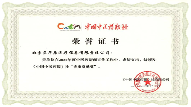 东华原荣获《中国中医药报》社“突出贡献奖”