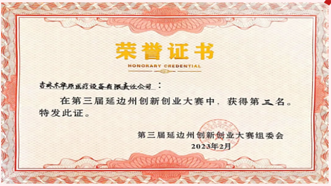 喜报|吉林东华原荣获第三届延边州创新创业大赛三等奖