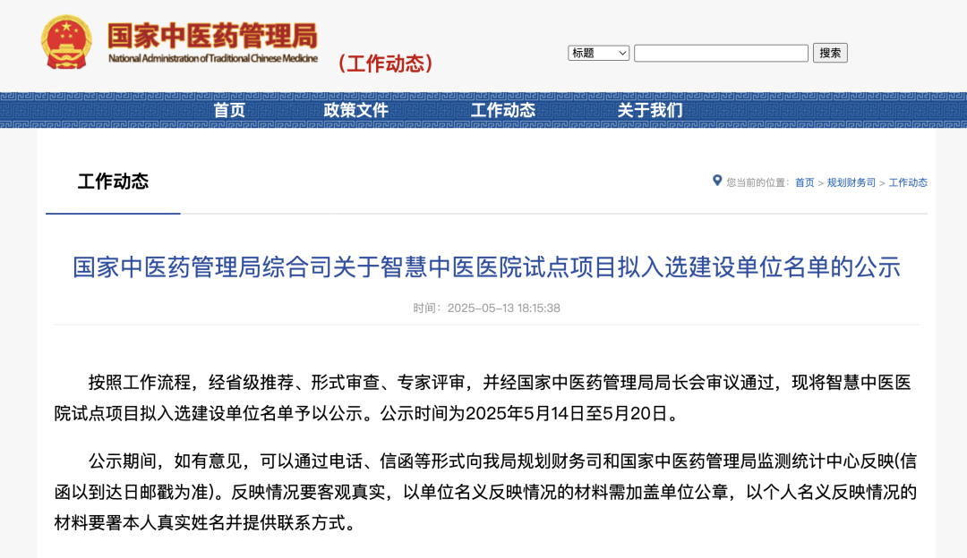 智慧中医医院试点项目拟入选建设名单公示,80%以上都在使用东华原!