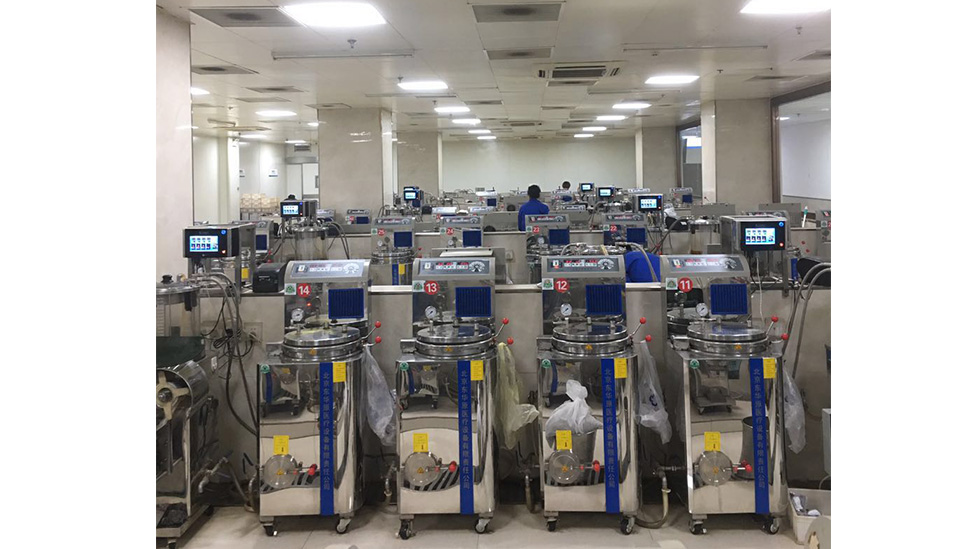 “中药房自动化煎药中心”项目是运用计算机、物联网及互联网技术,以中药调剂、中药煎药、智能机器人为基础,对煎药工艺流程(包括处方管理、调剂、浸泡、物料传输、煎药、包装、物流配送)、终端客户、设备、人员及工艺质量等环节进行全程自动化管理与控制的创新型煎药服务系统整体解决方案,基本实现无人智能化煎药。